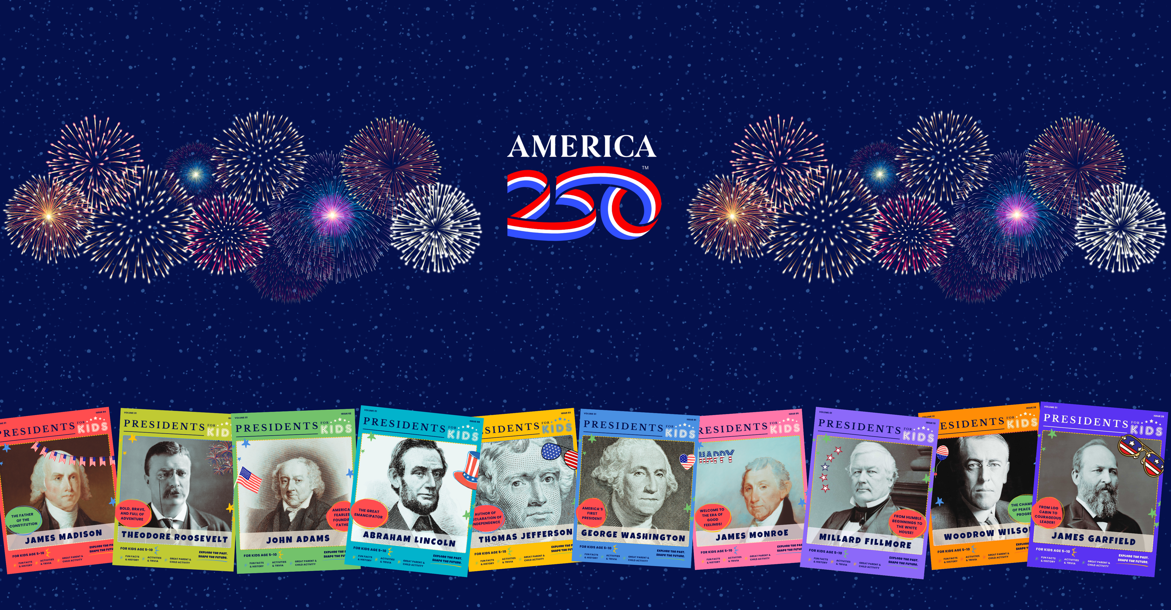Each set brings together multiple 24-page activity books that profile U.S. Presidents and First Ladies in a kid-friendly, engaging way—complete with historical fun facts, trivia, coloring pages, inspiring quotes, and hands-on activities.
