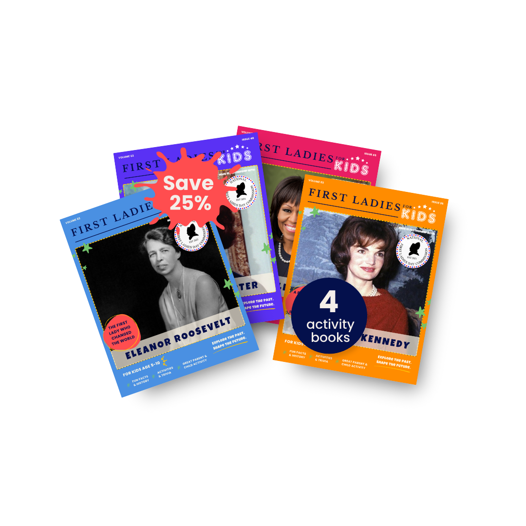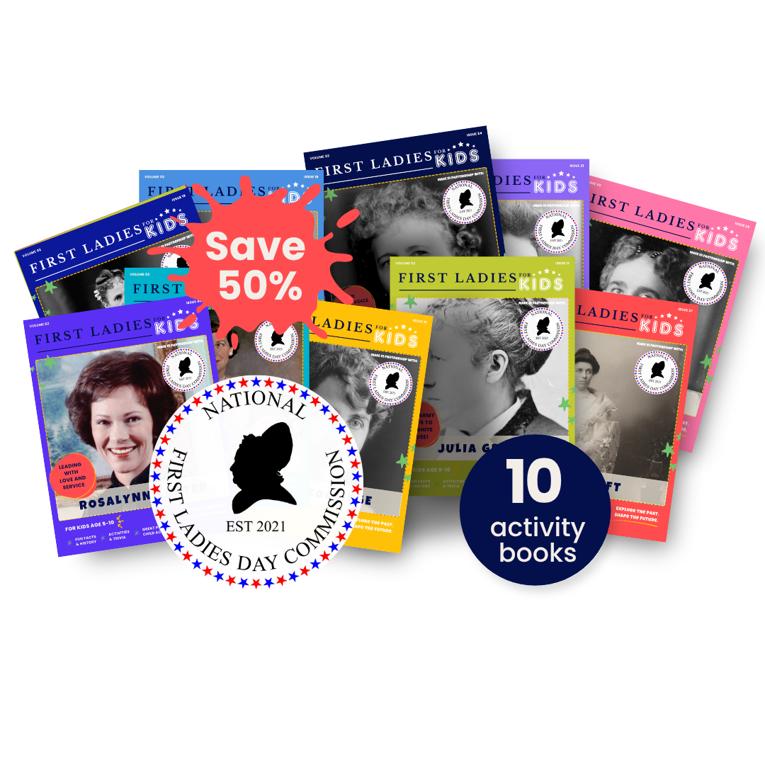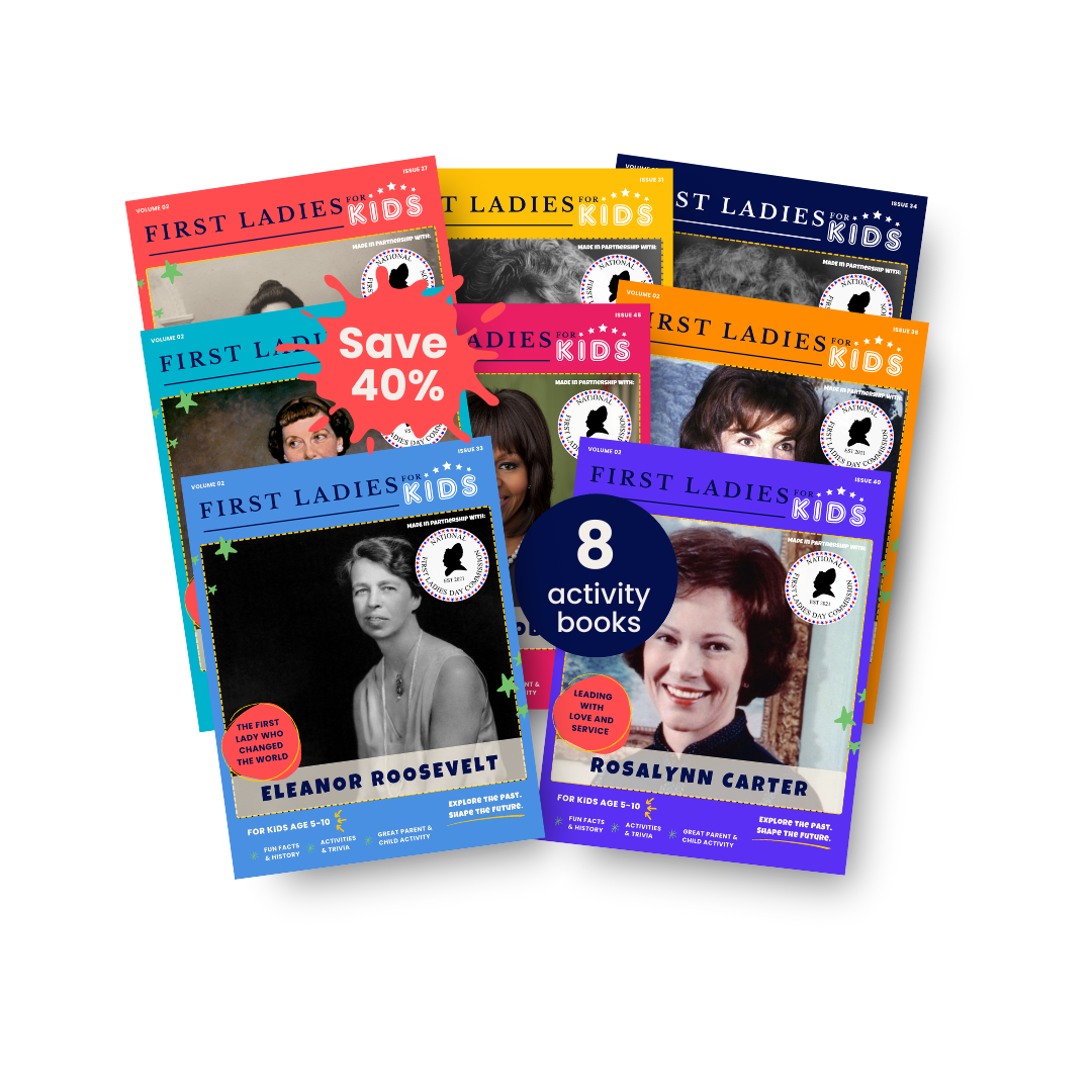 Developed in partnership with the National First Ladies Day Commission, each set brings together multiple 24-page activity books that profile U.S. First Ladies in a kid-friendly, engaging way—complete with historical fun facts, trivia, coloring pages, inspiring quotes, and hands-on activities.